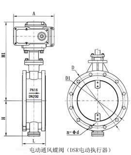 6、電動煙道蝶閥廠家外形及連接尺寸: